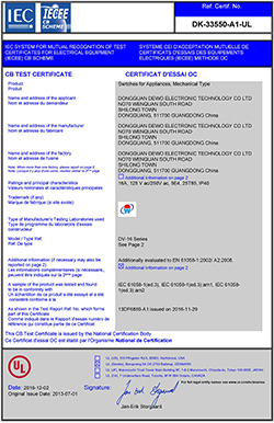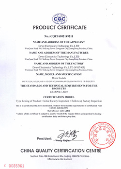 德傲微動開關(guān)CQC CB CE證書正式下發(fā)